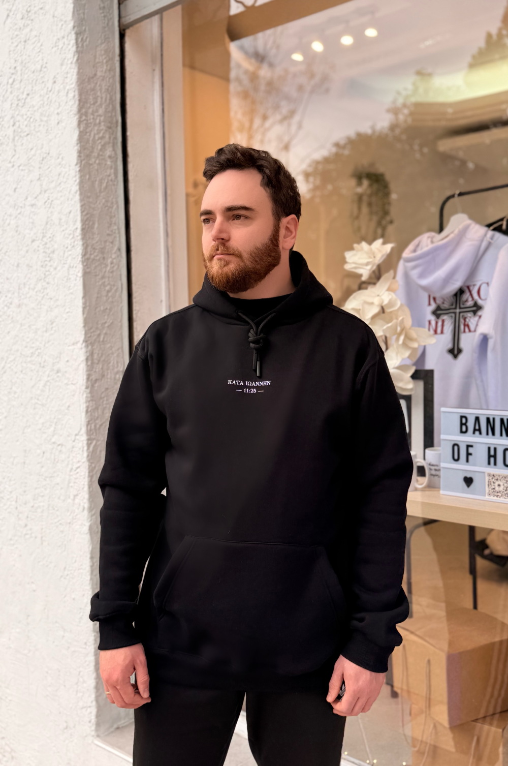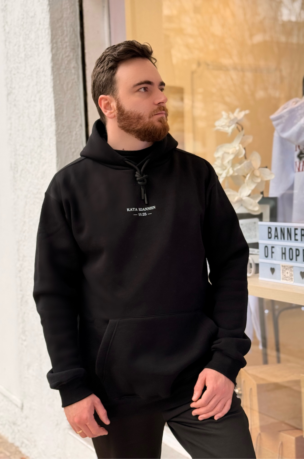 Ένα κομψό, σύγχρονο φούτερ με καθαρή μπροστινή γραμμή και δυναμικό art στην πλάτη. Στο μπροστινό μέρος, το «Εγώ είμαι η ανάσταση και η ζωή» θυμίζει ότι η ζωή στον Χριστό δεν τελειώνει ποτέ.