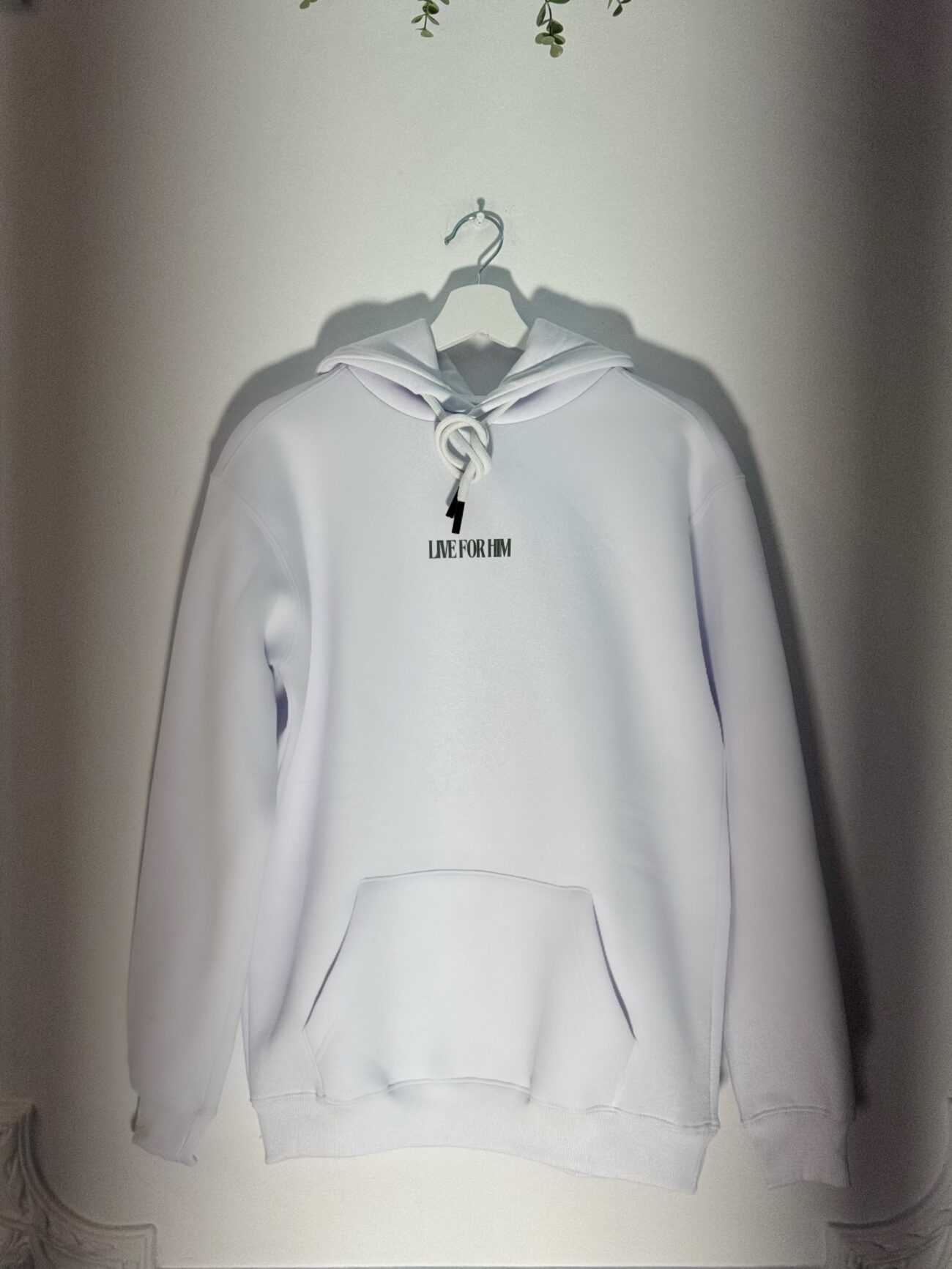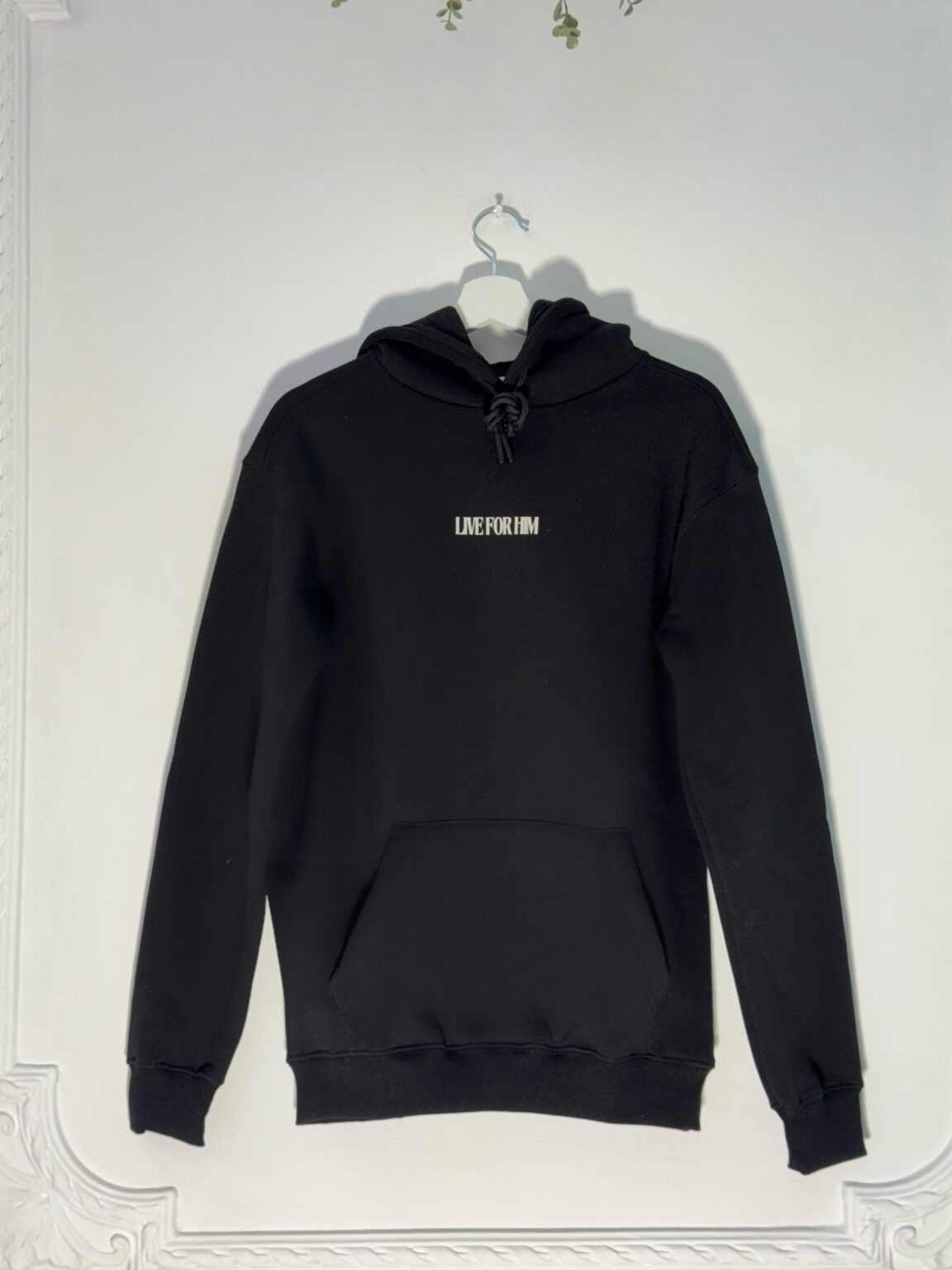 Ένα σύγχρονο hoodie με minimal μπροστινή αναφορά “LIVE FOR HIM”, που κρατά την αισθητική καθαρή και ουσιαστική.