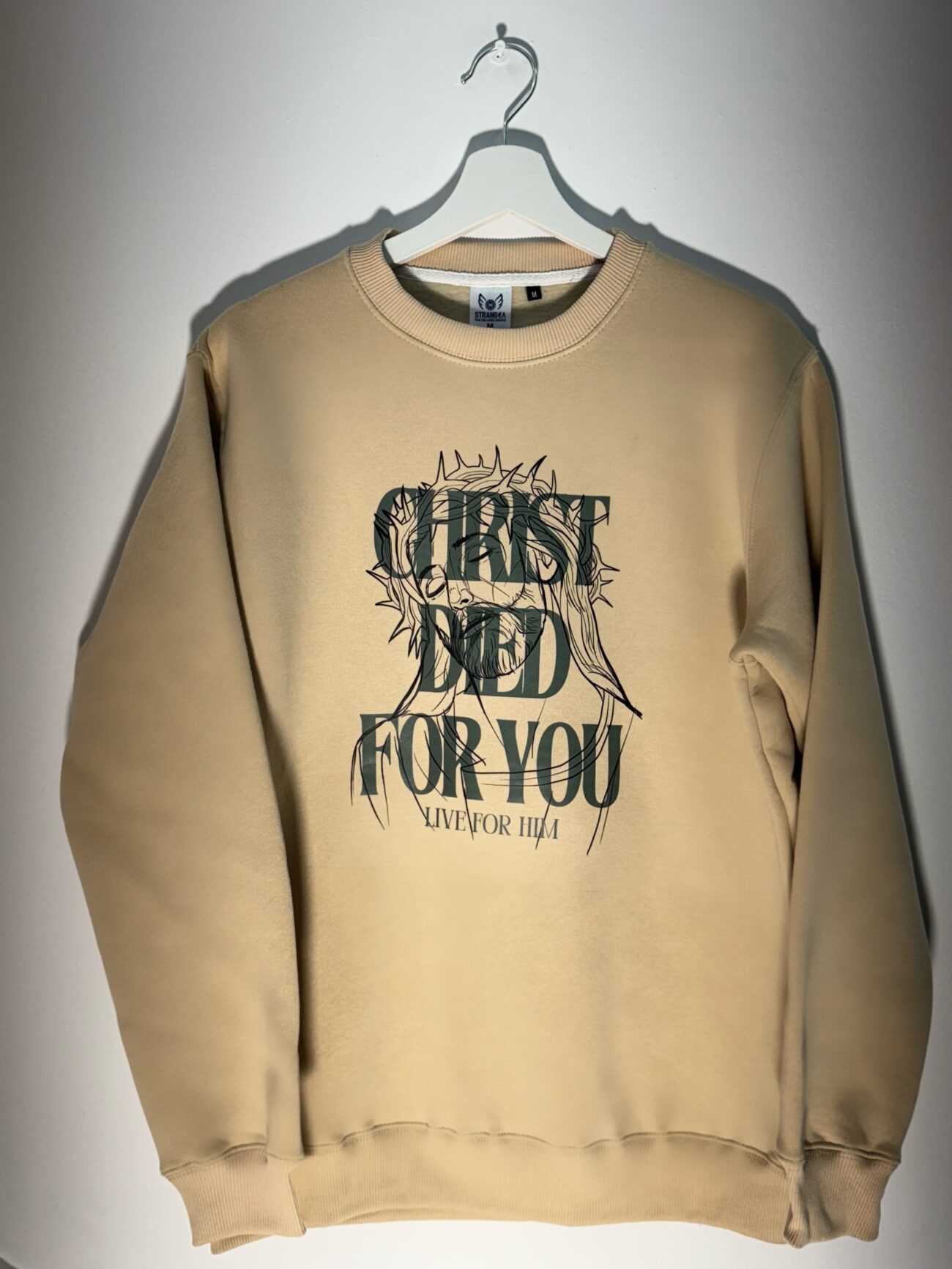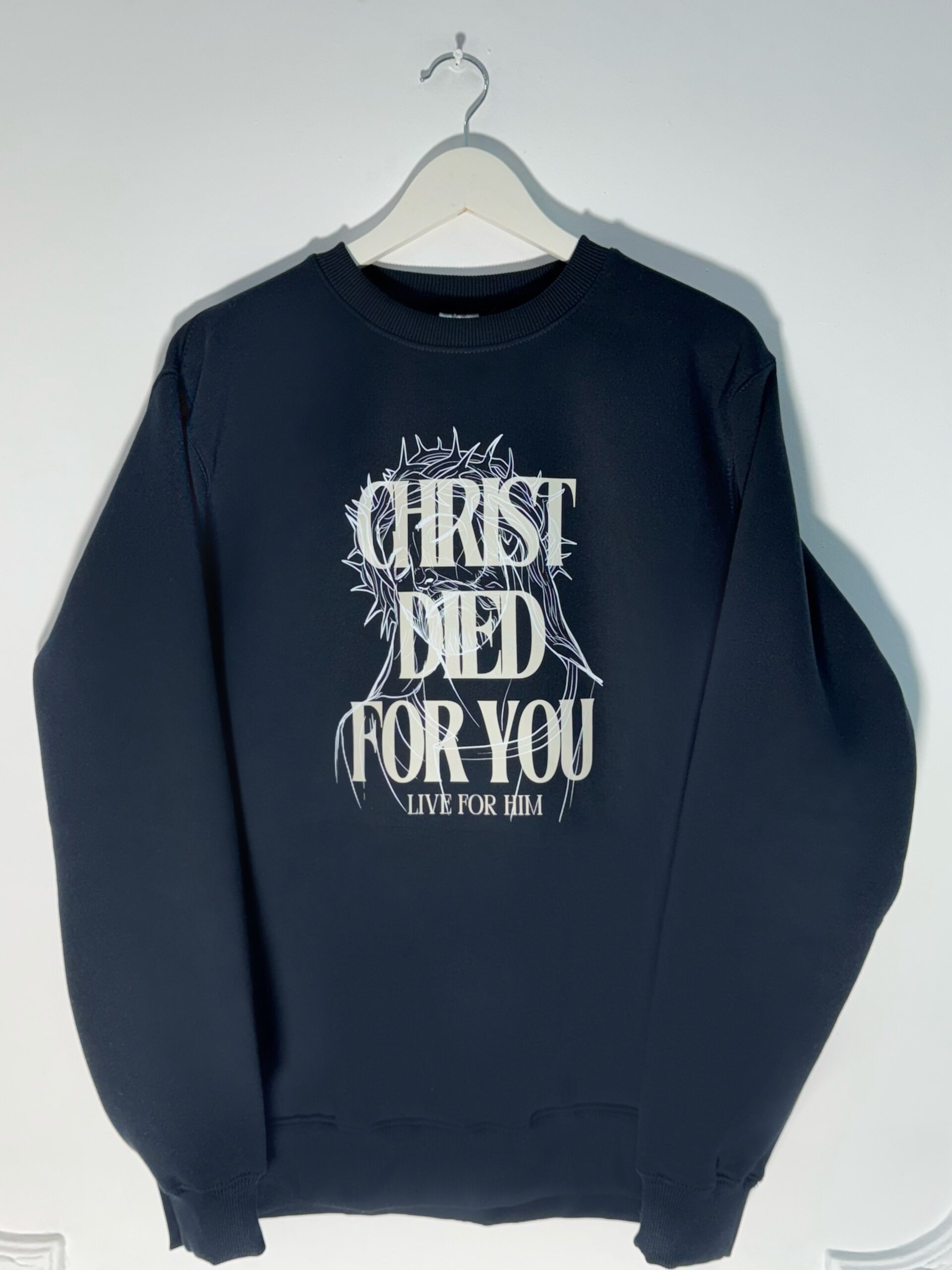 Ένα σύγχρονο sweater με καθαρή πλάτη και το πλήρες “CHRIST DIED FOR YOU” artwork τοποθετημένο αποκλειστικά στο μπροστινό μέρος.