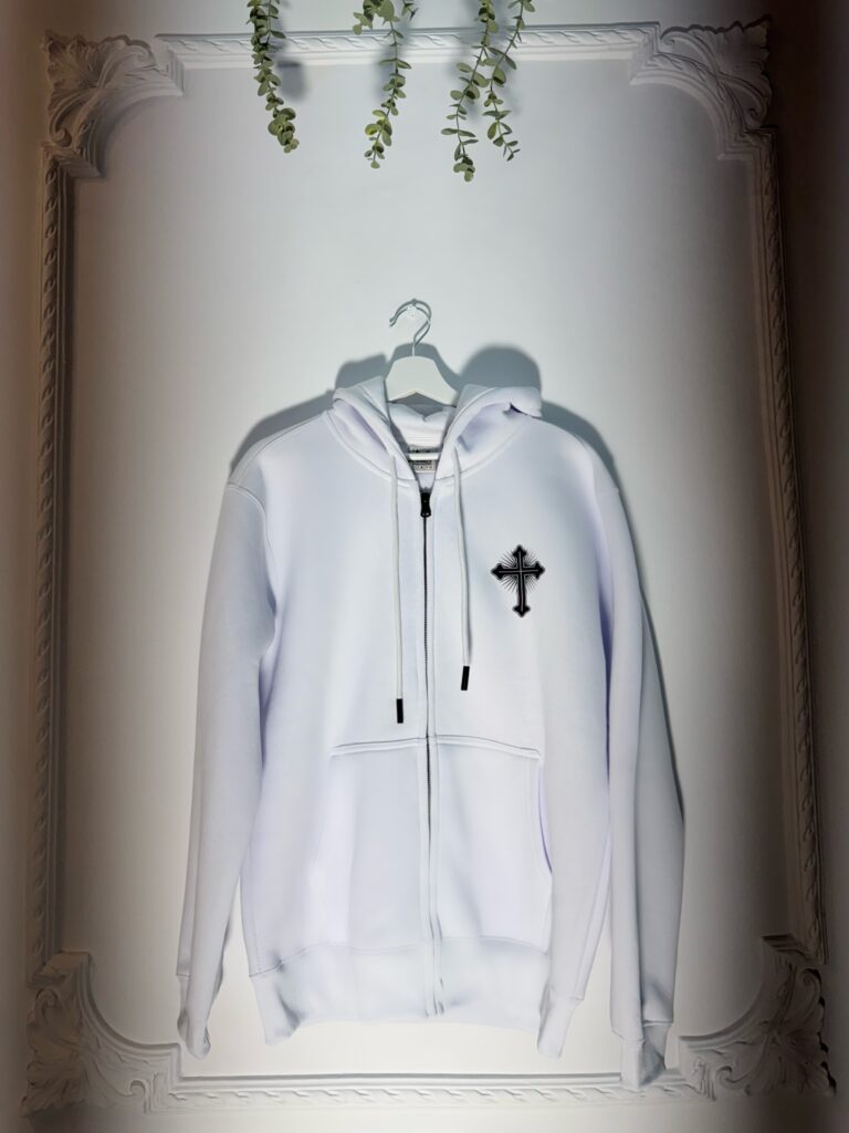 Το hoodie συνδυάζει minimal μπροστινή αισθητική με bold πνευματική δύναμη στην πλάτη. Street χαρακτήρας με αιώνιο μήνυμα.
