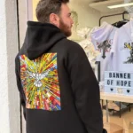 Ένα δυναμικό hoodie με καθαρή μπροστινή δήλωση και ισχυρή πνευματική ταυτότητα στην πλάτη.
