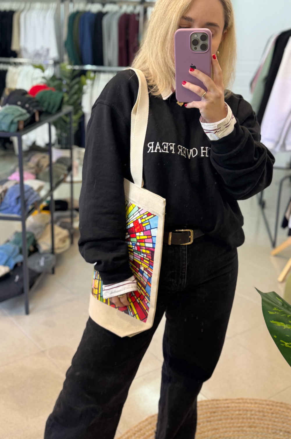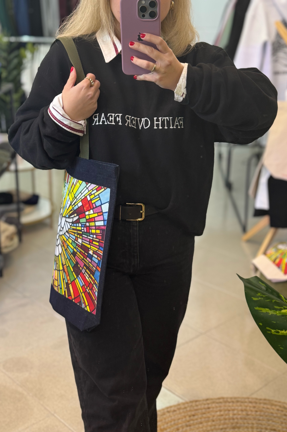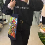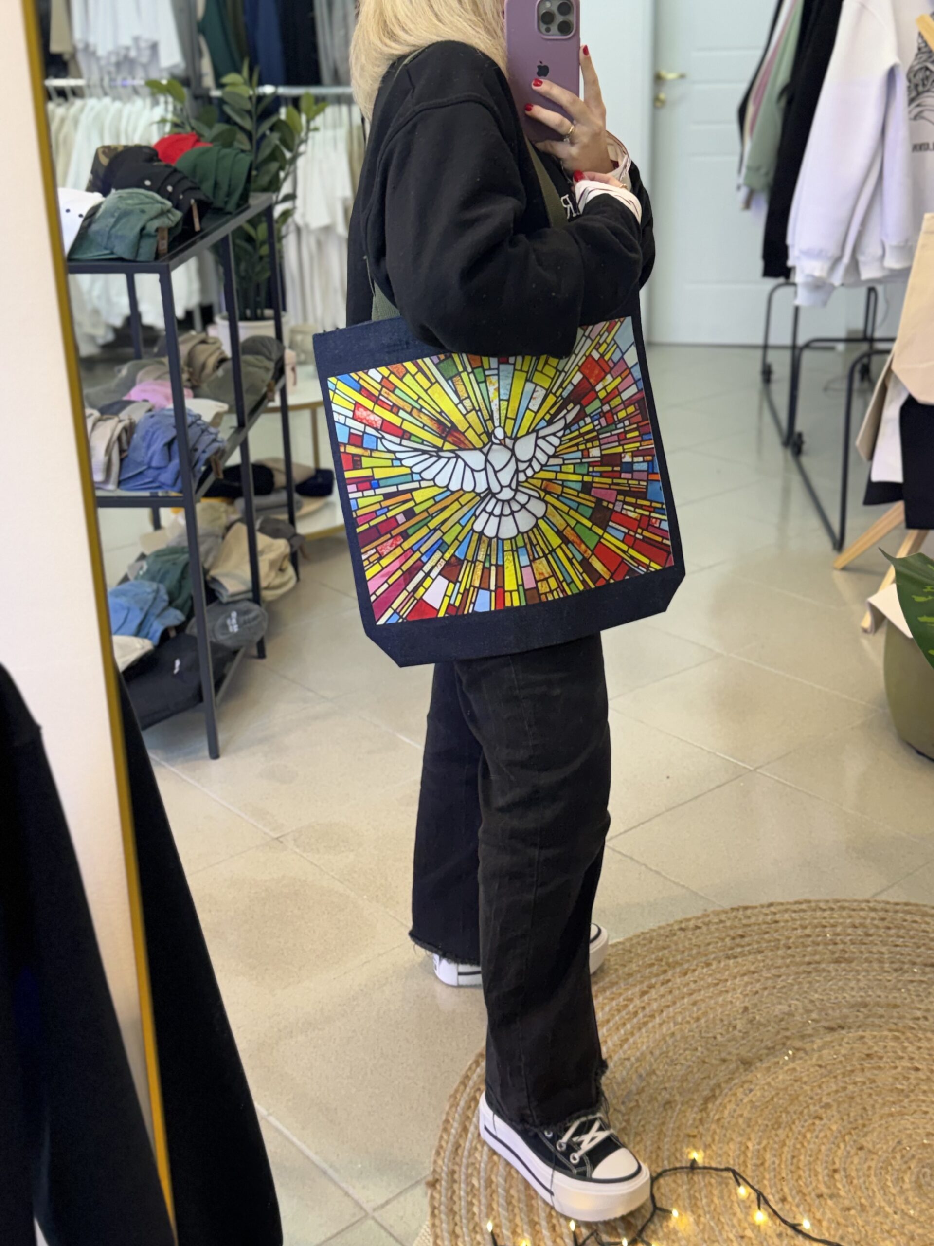 - Υλικό: 100% οργανικό βαμβάκι, denim καμβάς σε μαύρο και άσπρο.