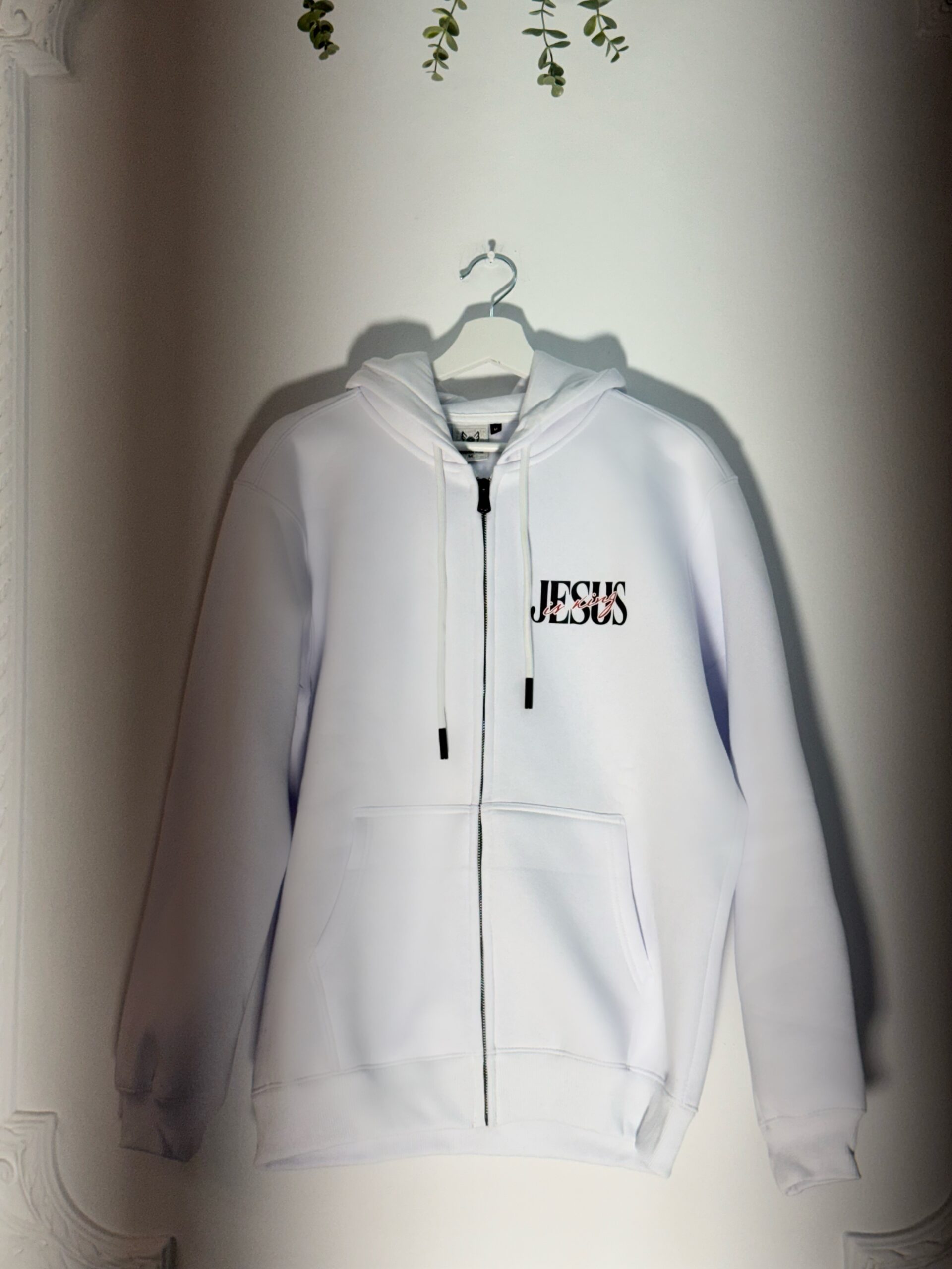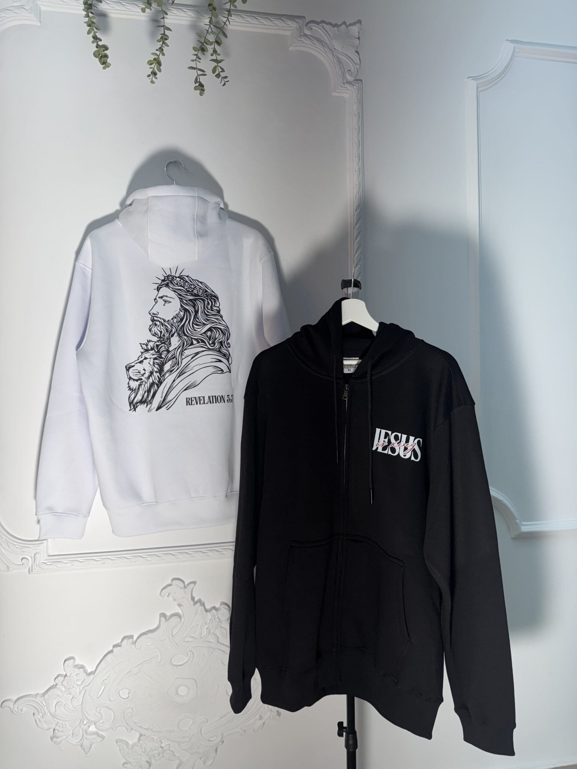 Το διακριτικό “Jesus is King” μπροστά λειτουργεί σαν ένα minimal σημάδι πίστης — ήρεμο, καθαρό και με διαχρονική αισθητική. Στην πλάτη, το art δίνει έναν πιο έντονο χαρακτήρα στο κομμάτι, διατηρώντας όμως αρμονία με το συνολικό design.