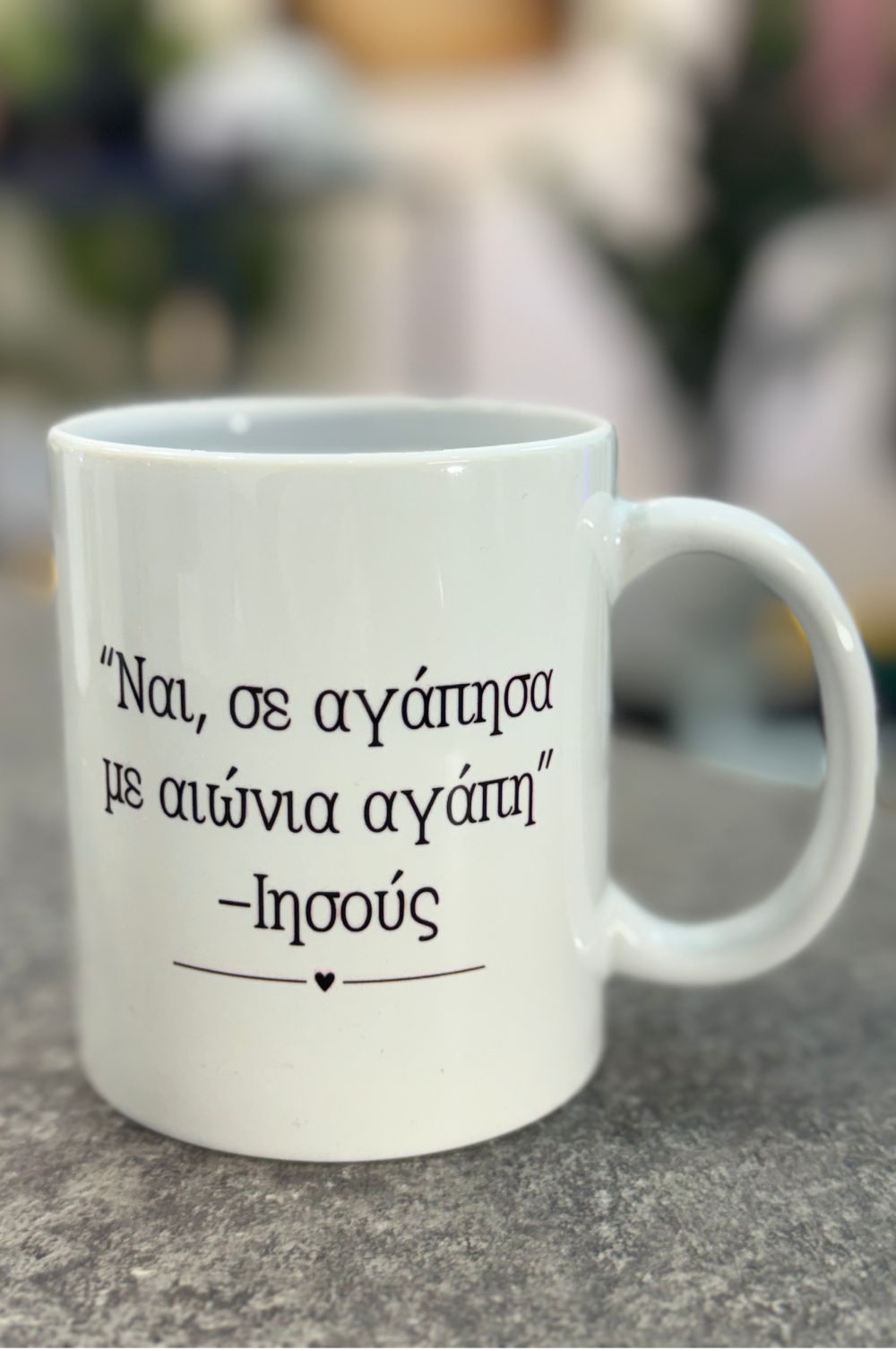 Κεραμική Κούπα 11oz Υλικό: Λευκή premium κεραμική Χωρητικότητα: 11oz (325ml – στάνταρ μέγεθος) Εκτύπωση: Υψηλής ποιότητας sublimation Σχέδιο: Με ενθαρρυντικά μηνύματα πίστης, ελπίδας και ενθάρρυνσης Χρήση: Ιδανική για ζεστά και κρύα ροφήματα Για καφέ το πρωί ή τσάι το βράδυ, αυτή η κούπα σου θυμίζει καθημερινά την Αλήθεια. Με ανθεκτικό σχεδιασμό και εμπνευσμένα μηνύματα που φωτίζουν τη μέρα σου και ενθαρρύνουν, είναι κάτι παραπάνω από μια κούπα – είναι έμπνευση στα χέρια σου.