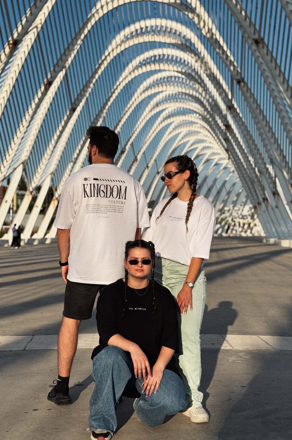 Η φωνή μιας γενιάς που δεν ακολουθεί, αλλά οδηγεί. Το KINGDOM Culture T-shirt φέρνει urban αισθητική με statement back print και χαλαρή oversized εφαρμογή. Είναι περισσότερο από ρούχο· είναι δήλωση ταυτότητας. Oversized γραμμή για άνεση, statement τύπωμα στην πλάτη και minimal front print που μιλάει χωρίς φωνές.