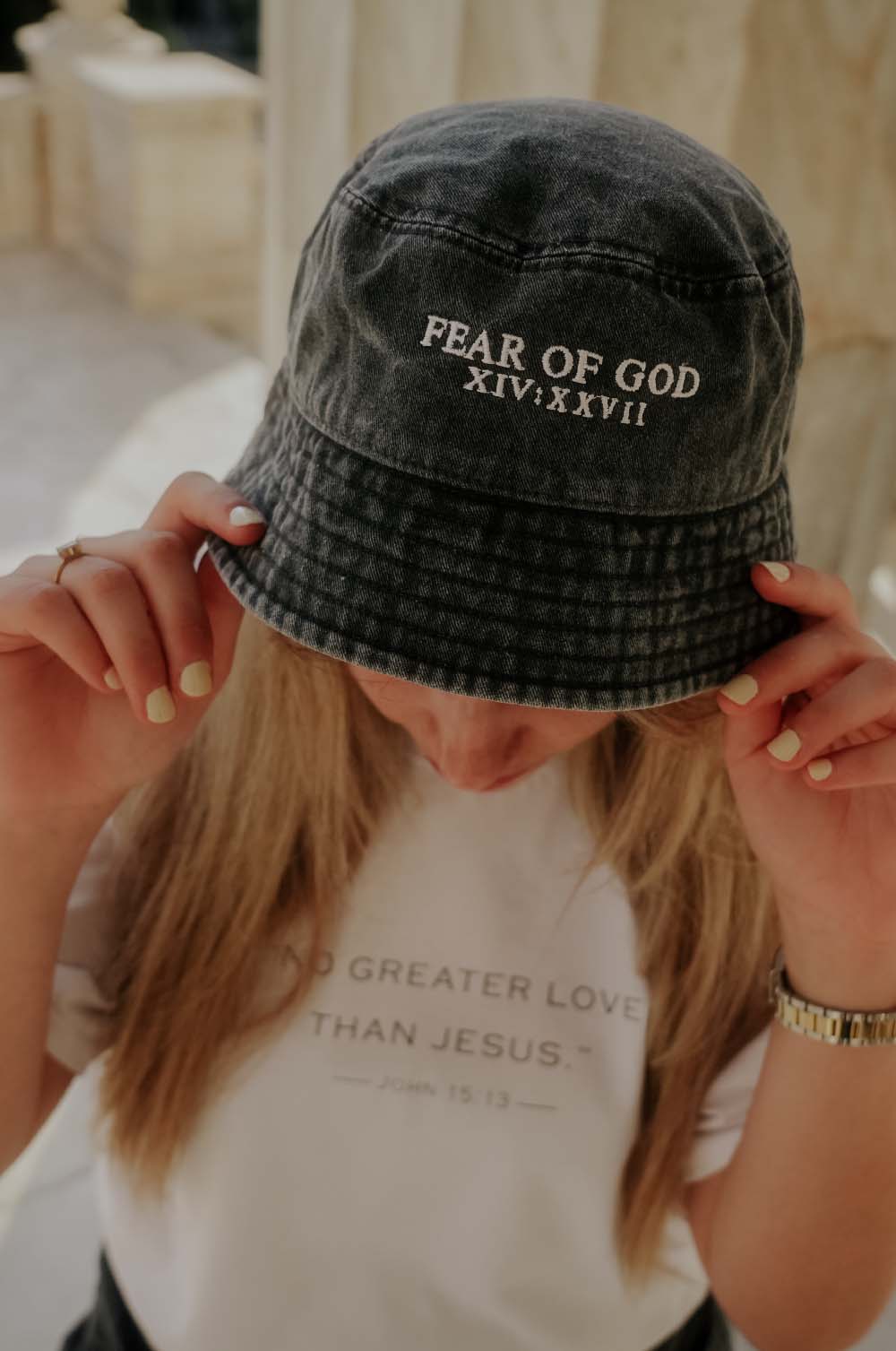 - Κεντημένο μήνυμα “FEAR OF GOD XIV:XXVII”
